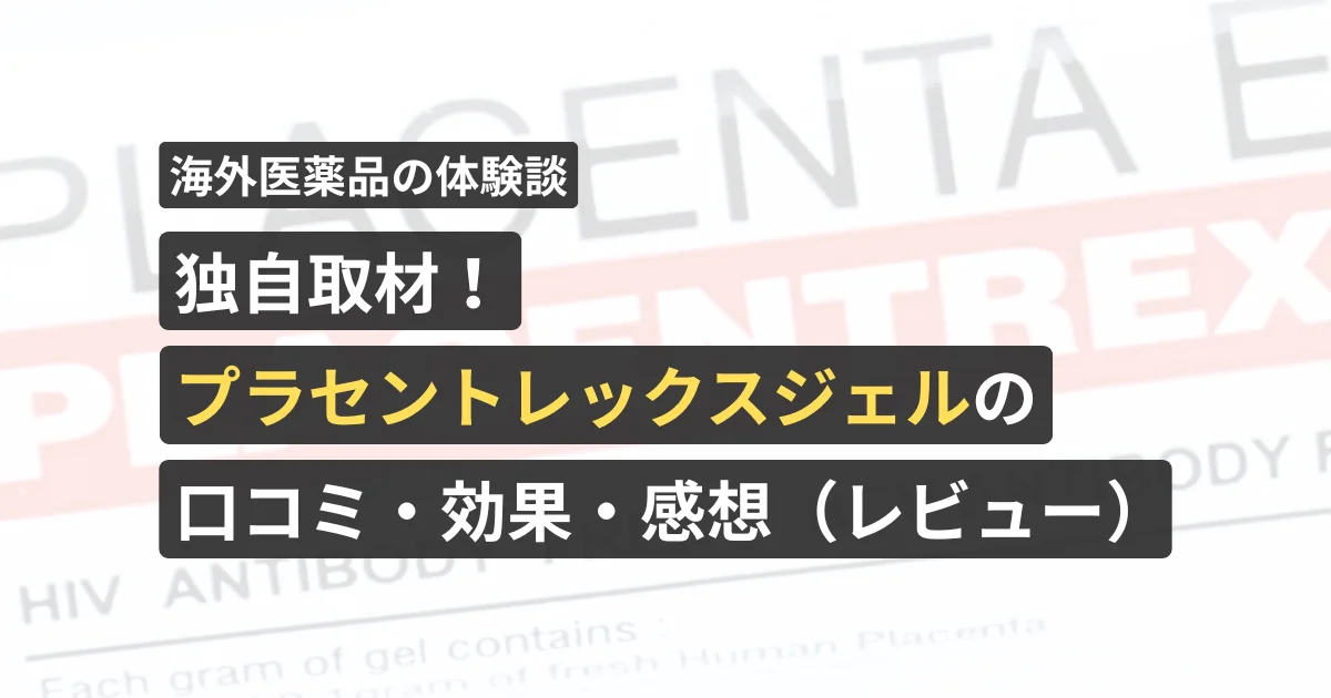 当サイトが独自に取材したプラセントレックスジェル(ヒトプラセンタジェル)の体験談レポート、口コミ・効果・感想(レビュー)もございますので、あわせてご覧ください。